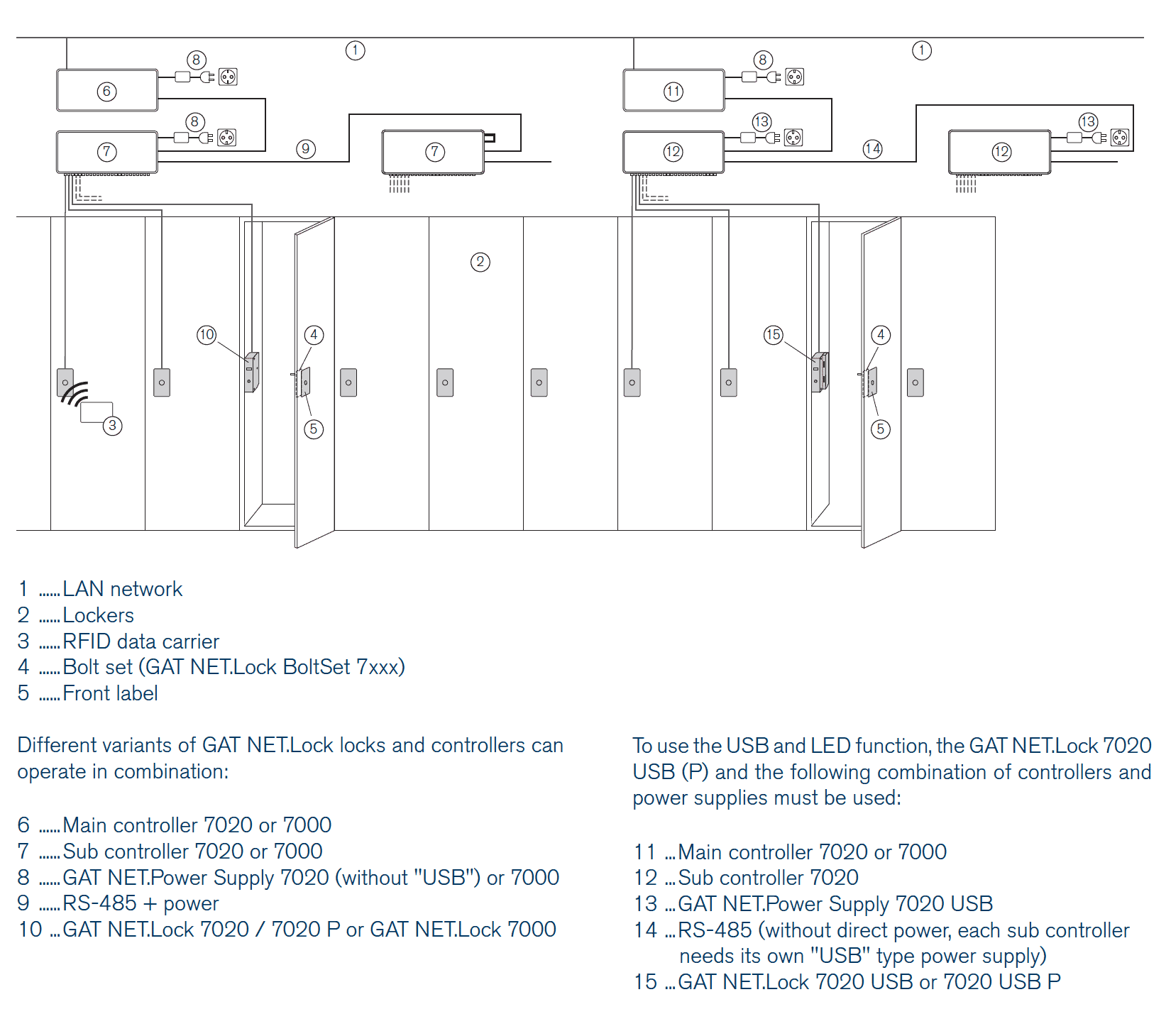 The GAT NET.Lock 7020 lock is the ideal solution for the convenient electronic locking of lockers in leisure facilities, universities, company offices, and depot compartments.