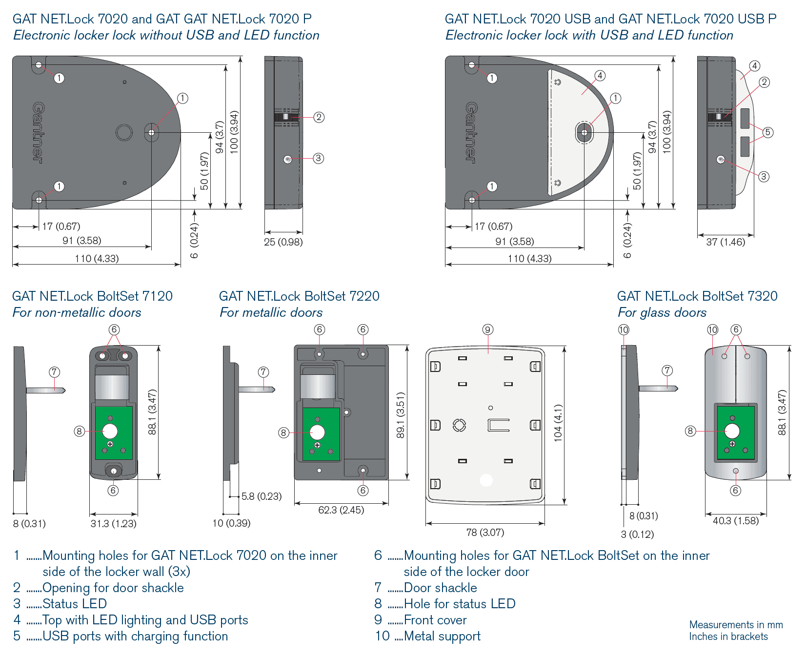 The GAT NET.Lock 7020 is suitable for all locker materials (wood, HPL, solid plastic, glass, and also sheet metal) and can be used with both left and right-hinged locker doors. Thanks to the smooth surface front, the locker is protected against vandalism and allows the customer a wide range of design freedom.